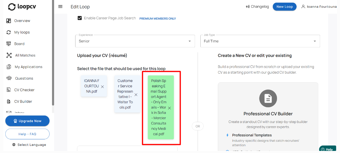 If you want to upload your tailored CV to a specific loop, follow these steps: