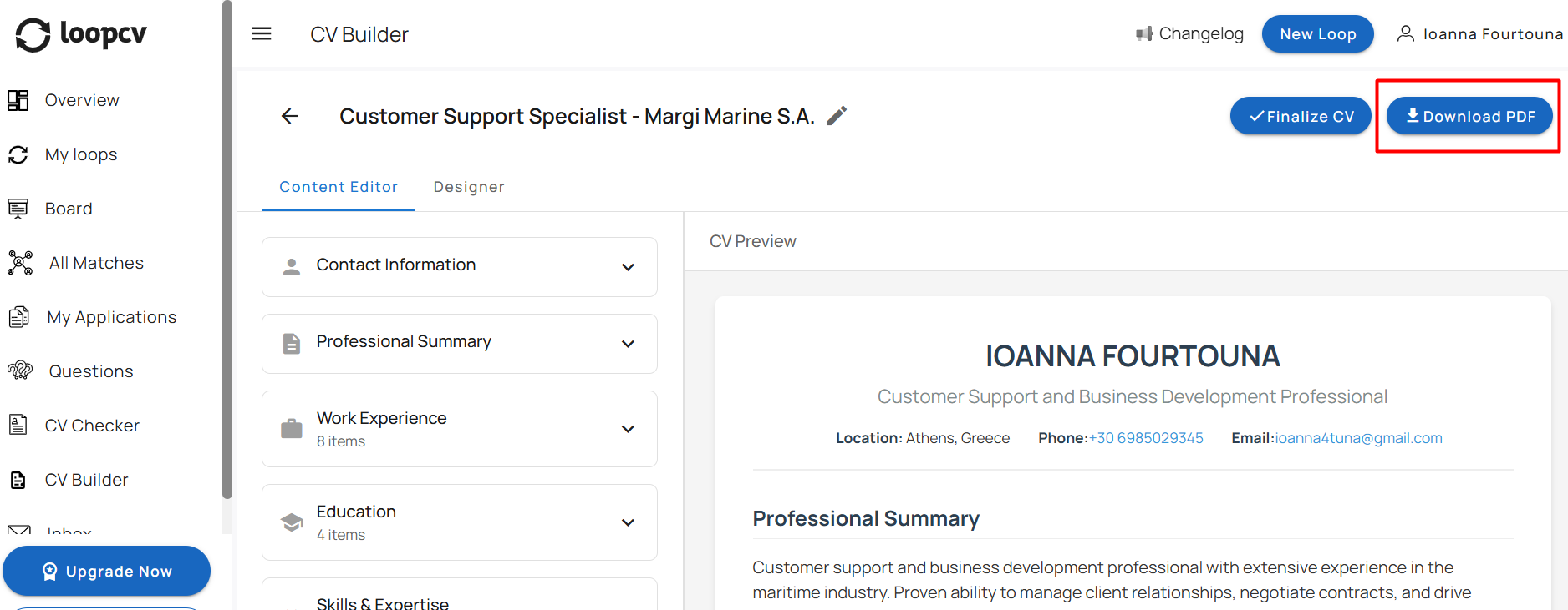 5. Once generated, click “Download PDF” to save your tailored CV.