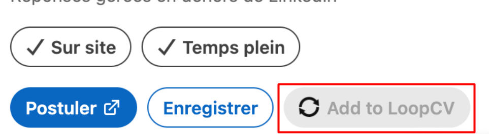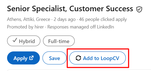 You can add job listings from LinkedIn directly to your LoopCV account using the “Add to LoopCV” button.